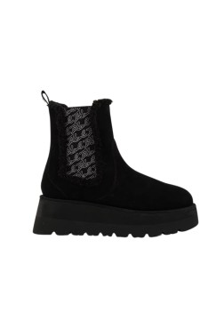 Karl Lagerfeld 's black snow boots are stylish protection from the cold. Made of soft suede, with elastic inserts decorated with the brand's logo.