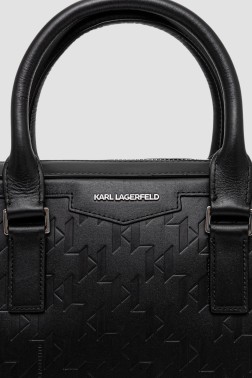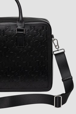 KARL LAGERFELD Black men's monogrammed leather briefcase