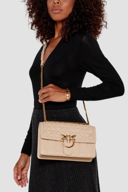 The beige Love One Classic DC women's handbag by Pinko is an elegant accessory made of high-quality natural leather. The handbag features an adjustable strap, two compartments separated by a zippered pocket and an additional slip pocket for convenient organization. A dust bag is included to protect the handbag during storage.