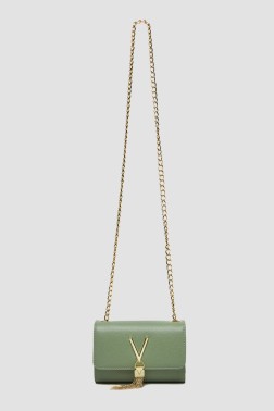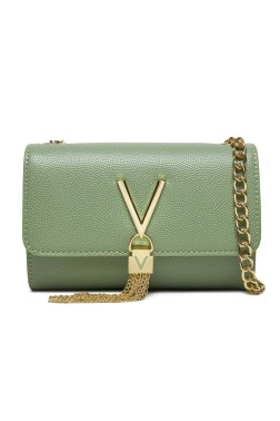 Women's Divina handbag by Valentino by Mario Valentino. The flap closes with a snap closure, inside there is one slip pocket and one zipped pocket. It has a 118 cm long chain.
