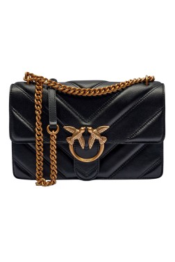 PINKO 's black Love One Classic Light DC clutch bag in soft natural leather combines elegance with modern style. The distinctive Love Birds clasp emphasizes the luxurious character of the handbag, ideal for evening outings and everyday styling.