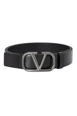 Men's belt in black with onyx colored buckle. Made of natural calfskin leather. Fastened with a pin.