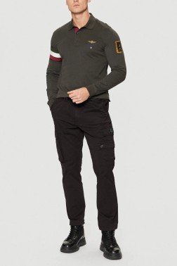 AERONAUTICA MILITARE Gray-green men's polo longsleeve Tricolor