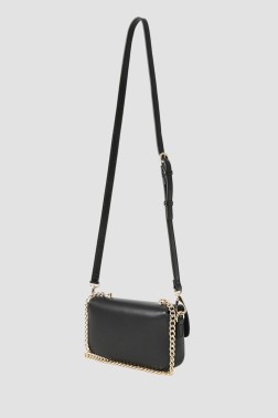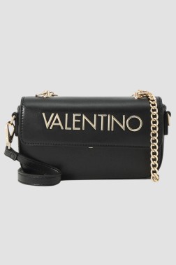 Black women's Nammos Re Flap Bag by Valentino By Mario Valentino. It is made of high-quality ecological leather, decorated with gold hardware, and closes with a snap closure. It has one pocket and a 120 cm long adjustable strap. Comes with a dust bag.
