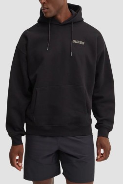 The black men's Emis hoodie from Guess is the perfect choice for colder days. Made of high-quality materials - 85% cotton and 15% polyester, it guarantees wearing comfort and durability. The simple design and black color make it extremely versatile and easy to match with different styles. Ideal for everyday wear, but also for sporty outings.