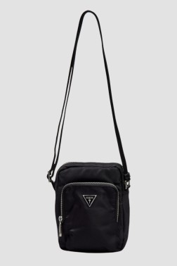 Men's Roma shoulder pouch by Guess, made of high-quality polyester. It has one roomy compartment and three practical pockets, closed with a solid zipper. The adjustable strap ensures a comfortable fit. Elegant and functional - perfect for everyday use.