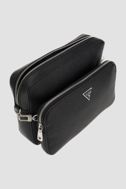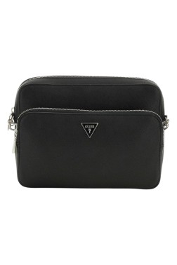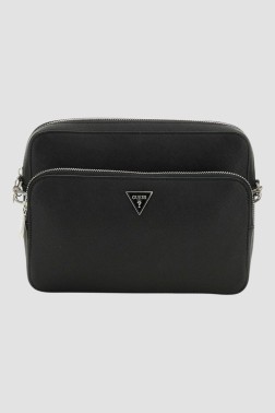 Black men's Milano pouch by Guess, made of high-quality eco-friendly leather. Equipped with two capacious compartments, three internal zippered pockets and two slip pockets. The adjustable strap ensures comfortable carrying. Practical and stylish - it will work in any situation.