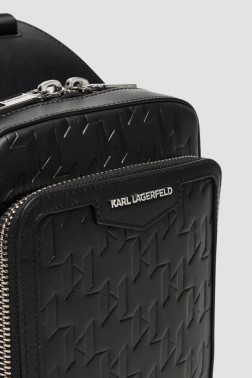 KARL LAGERFELD Black Leather Loom Sling Bag is a modern model with a compact form, distinguished by subtle embossing and elegant finishing. It will be perfect for everyday use, offering convenience of use and the brand's signature timeless style.