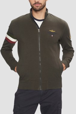 Gray-green men's sweatshirt With Tricolor Insert, by Aeronautica Militare.