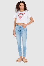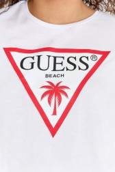 GUESS White women's short cotton t-shirt with raw boxy fit finish
