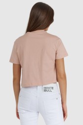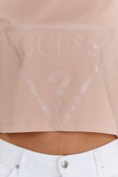 GUESS women's short T-shirt in powder pink. Large triangular logo on the front.