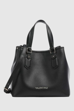 Medium Brixton trunk by Valentino by Mario Valentino. Lockable with a magnet, inside three compartments, the middle one zippered. Inside, one slip pocket and one zippered pocket. The bag has handles (height of handles 14 cm) and an attachable adjustable strap (114 cm). Dust bag included.