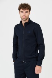 Navy blue men's unbuttoned sweatshirt by AERONAUTICA MILITARE.