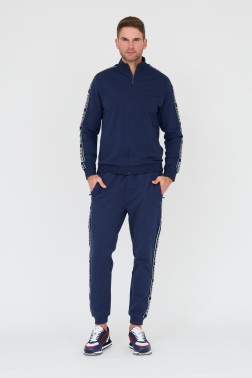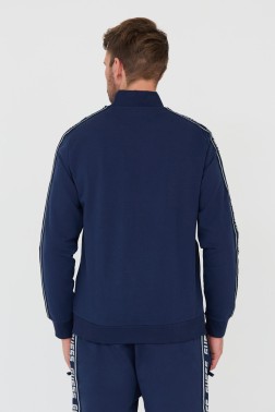 Navy blue men's sweatshirt, unbuttoned without a hood, by Guess.