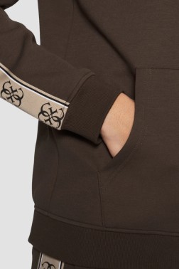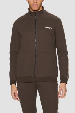 Brown men's unbuttoned sweatshirt with Mickey stripes by Guess.