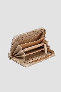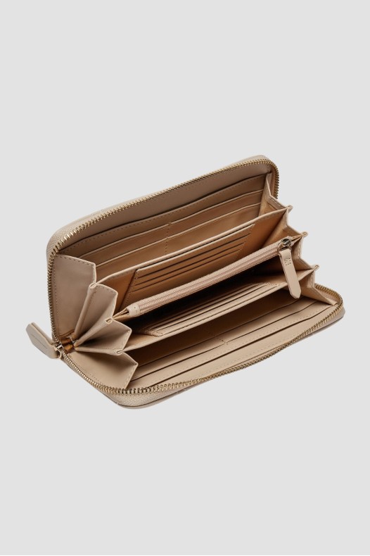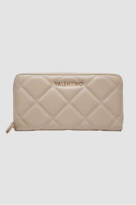 Beige women's wallet by Valentino by Mario Valentino, made of high quality ecological leather. It closes with a zipper. Inside there is a coin pocket, four compartments, eight card slots and six slip pockets.