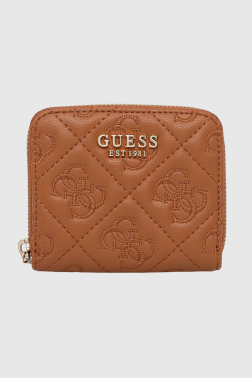 Brown women's ecological leather wallet by Guess. Zippered, inside zippered coin pocket, one compartment and 4 card slots.
