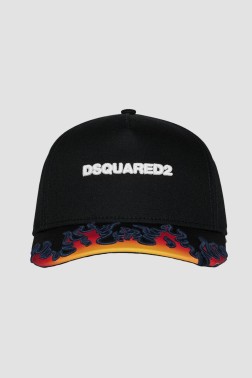 DSQUARED2 Męska czarna czapka z daszkiem w płomienie