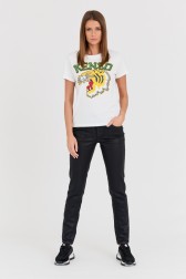 Czarne damskie skinny jeansy z połyskiem, marki JUST CAVALLI.