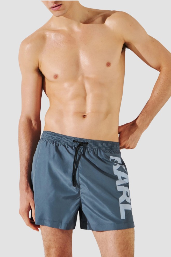 Niebieskoszare męskie kąpielówki marki Karl Lagerfeld.