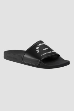 Czarne męskie klapki KONDO RSG Logo Slide, marki Karl Lagerfeld.