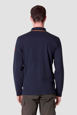 AERONAUTICA MILITARE Granatowe męskie polo z długim rękawem Piqué