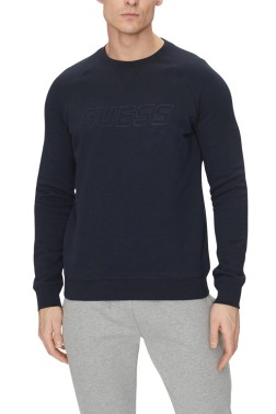 Granatowa męska bluza New Aldwin od marki Guess to idealny wybór na chłodniejsze dni. Wykonana z wysokiej jakości materiałów, w składzie 85% bawełny i 15% poliestru, zapewnia komfort noszenia oraz trwałość. Prosty, minimalistyczny design bez wzorów sprawia, że bluza łatwo komponuje się z różnorodnymi stylizacjami
