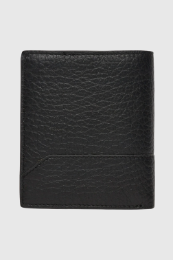 Czarny męski portfel ze skóry naturalnej marki Guess. Posiada zamykaną na zatrzaska kieszeń na bilon, pięć miejsc na karty i wsuwaną kieszeń.
