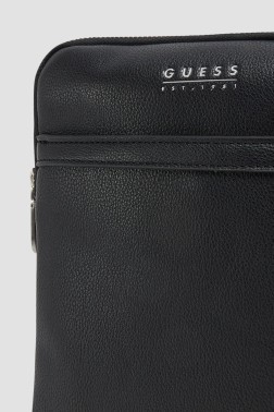 Czarna męska saszetka Milano od marki Guess to funkcjonalne i stylowe akcesorium na co dzień. Wykonana z trwałej skóry ekologicznej, dobrze sprawdzi się zarówno w miejskim stylu, jak i w podróży. Wyposażona w regulowany pasek, zapewnia wygodne dopasowanie. Model oferuje jedną pojemną komorę główną, dwie zewnętrzne kieszenie zamykane na zamek oraz dwie kieszenie wsuwane wewnątrz.
