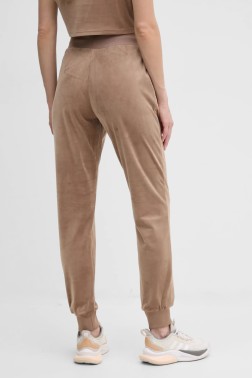 Brązowe damskie spodnie welurowe Couture, marki Guess.