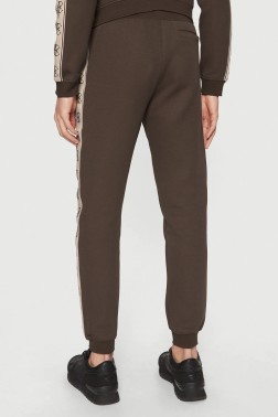Brązowe męskie spodnie dresowe z lampasami Mickey marki Guess.