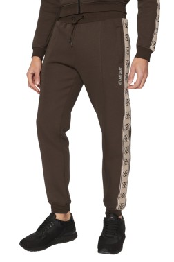 GUESS Brązowe męskie spodnie dresowe z lampasami Mickey