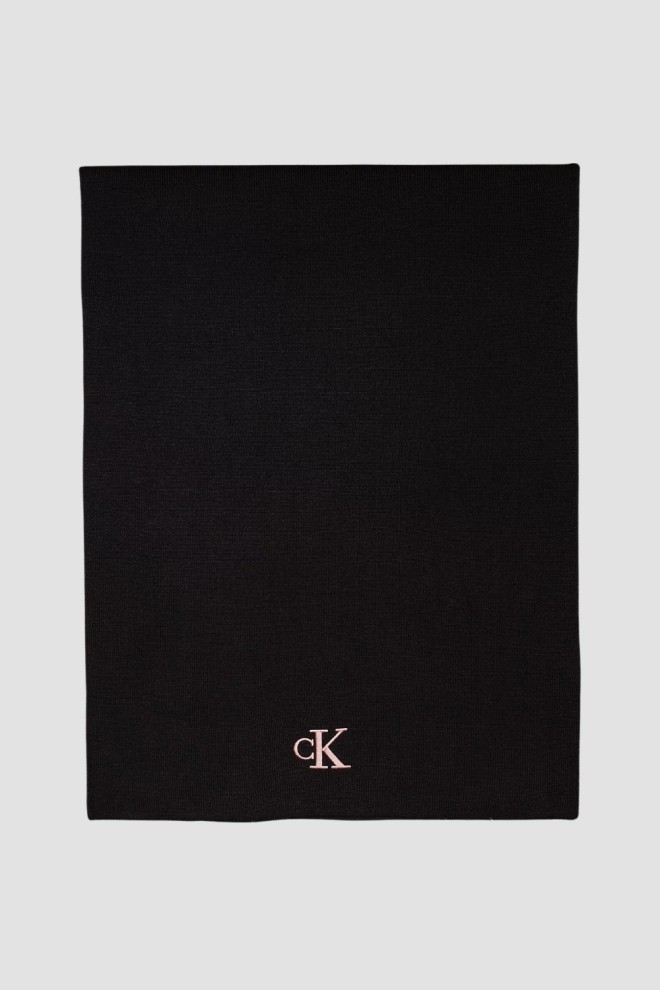 CALVIN KLEIN Czarny damski wełniany szalik z domieszką kaszmiru
