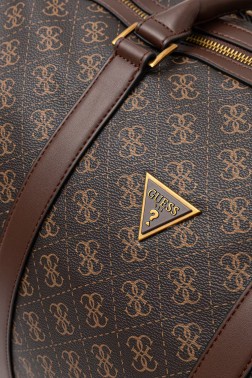 Brązowa torba podróżna Milano marki Guess, wykonana z trwałych materiałów. Posiada przestronną komorę główną i dodatkowe kieszenie na drobiazgi. Wymiary 56,5 × 30 × 23 cm sprawiają, że doskonale sprawdza się na weekendowe i dłuższe wyjazdy. Stylowa, pojemna i funkcjonalna – idealna do podróży.