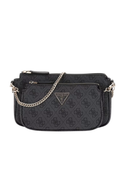 Czarna torebka damska Noelle marki Guess, wykonana ze skóry ekologicznej. Posiada regulowany pasek, jedną dużą komorę z trzema kieszeniami wsuwanymi na karty i jedną zasuwaną, oraz zewnętrzną kieszeń zasuwaną na zamek. W zestawie odpinana saszetka o wymiarach 11 × 19,5 × 3 cm, która może służyć jako oddzielna mała torebka.