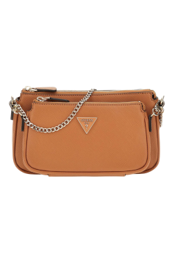 Brązowa torebka damska Noelle marki Guess, wykonana ze skóry ekologicznej. Posiada regulowany pasek, jedną dużą komorę z trzema kieszeniami wsuwanymi na karty i jedną kieszenią na zamek, oraz zewnętrzną kieszeń zasuwaną. W zestawie odpinana saszetka o wymiarach 11 × 19,5 × 3 cm, która może pełnić funkcję małej torebki.