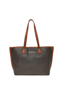 Brązowa shopperka Lady Re marki Valentino By Mario Valentino. Wykonana ze skóry ekologicznej, posiada trzy komory: dwie zamykane na magnes i jedną zasuwaną na zamek. Wewnątrz trzy kieszenie: dwie wsuwane i jedna zasuwana. W zestawie worek przeciwkurzowy.