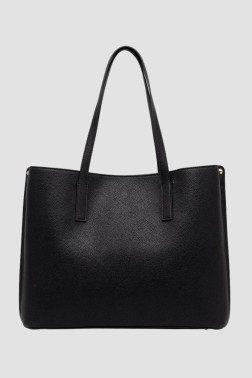 Czarna damska shopperka marki Guess. Wykonana ze skóry ekologicznej, posiada trzy komory, dwie zamykane na magnes, jedna zasuwana na zamek. W środku znajdują się trzy kieszenie: dwie wsuwane, jedna zasuwana. Torebka wyposażona z nóżki ochronne, w zestawie worek przeciwkurzowy.