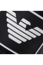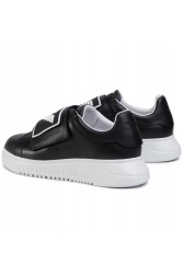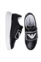 Adidași negri pentru bărbați Emporio Armani. Fixare cu velcro. Logo-ul mărcii din cauciuc alb pe închidere, prins cu velcro pe limbă, țesătură neagră cu numele mărcii atunci când este detașat. Talpă albă.