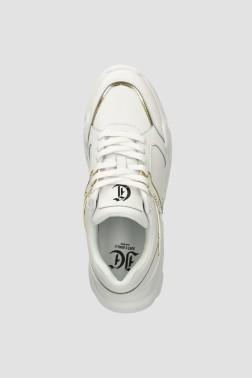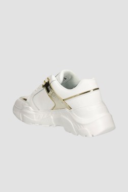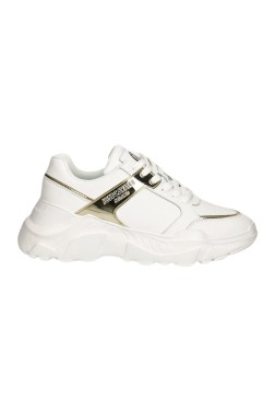 JUST CAVALLI Adidași albi cu logo auriu Fondo Casper