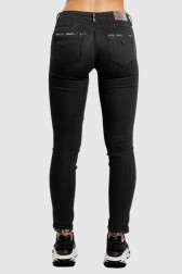 Blugi de damă GUESS de culoare neagră, finisați cu detalii cu model piton. Căptușeală caldă, catifelată, de asemenea cu model piton. Croială ajustată, modelatoare. Creștere medie, picioare subțiri. Închidere cu fermoar și nasturi. Trei buzunare față, două buzunare spate. Buzunar dreapta spate cu aplicație triunghiulară cu logo de culoare onix.