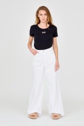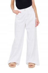Blugi albi ZOEY Summer Linen pentru femei. Închidere cu nasturi.