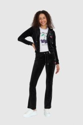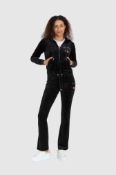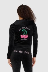 JUICY COUTURE Hanorac din catifea neagră cu cireșe brodate pentru femei