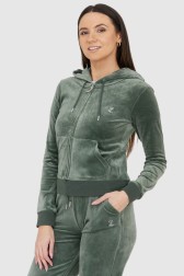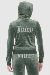 JUICY COUTURE Catifea verde cu glugă cu diamante pentru femei, fără nasturi