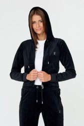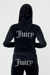 Hanorac cu glugă din catifea cu bijuterii JUICY COUTURE pentru femei Black Robertson