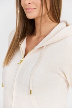 Acest hanorac bej pentru femei Robertson Gold de la renumitul brand Juicy Couture este o alegere excelentă pentru orice femeie. Confecționat din materiale de înaltă calitate, compuse din 80% bumbac și 20% poliester, acesta oferă confort și durabilitate. Acest model cu glugă și mâneci lungi, cu croială regulată, are un decolteu rotund elegant și o închidere practică cu fermoar. Ideal pentru stilul de zi cu zi.