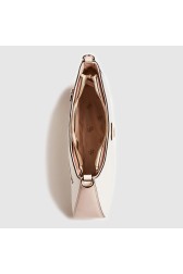Geantă de umăr în alb cu elemente de culoare ecru. Portofel detașabil. Curea detașabilă cu lungime reglabilă. În interior un buzunar cu fermoar și două buzunare glisante. Geantă de praf inclusă.
