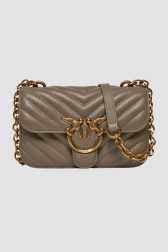 Geantă de mână pentru femei Love Bell Mini de la PINKO. Clapeta se închide cu un fermoar, în interior două compartimente, un buzunar cu fermoar și un buzunar glisant.