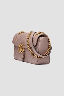 Geanta de mână GG Marmont de la GUCCI este fabricată din piele naturală de înaltă calitate, cu un model neobișnuit în formă de heringbone. Partea din spate a genții prezintă o inimă subtilă în relief, care adaugă o notă romantică.