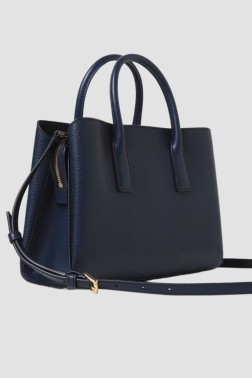 Geanta de mână SM Satchel albastru marin de la Michael Kors este o geantă de mână mică și elegantă, realizată din piele naturală de calitate superioară și proiectată într-un stil clasic. Geanta de mână are o curea lungă reglabilă de 114 cm, care îi permite să fie purtată confortabil într-o varietate de moduri. O caracteristică suplimentară este reprezentată de picioarele de protecție, care protejează geanta de deteriorări. Interiorul genții este format din trei compartimente: două închise cu un magnet și unul închis cu un fermoar, facilitând organizarea articolelor depozitate. Este inclusă și o pungă de praf pentru a proteja geanta atunci când nu este utilizată.